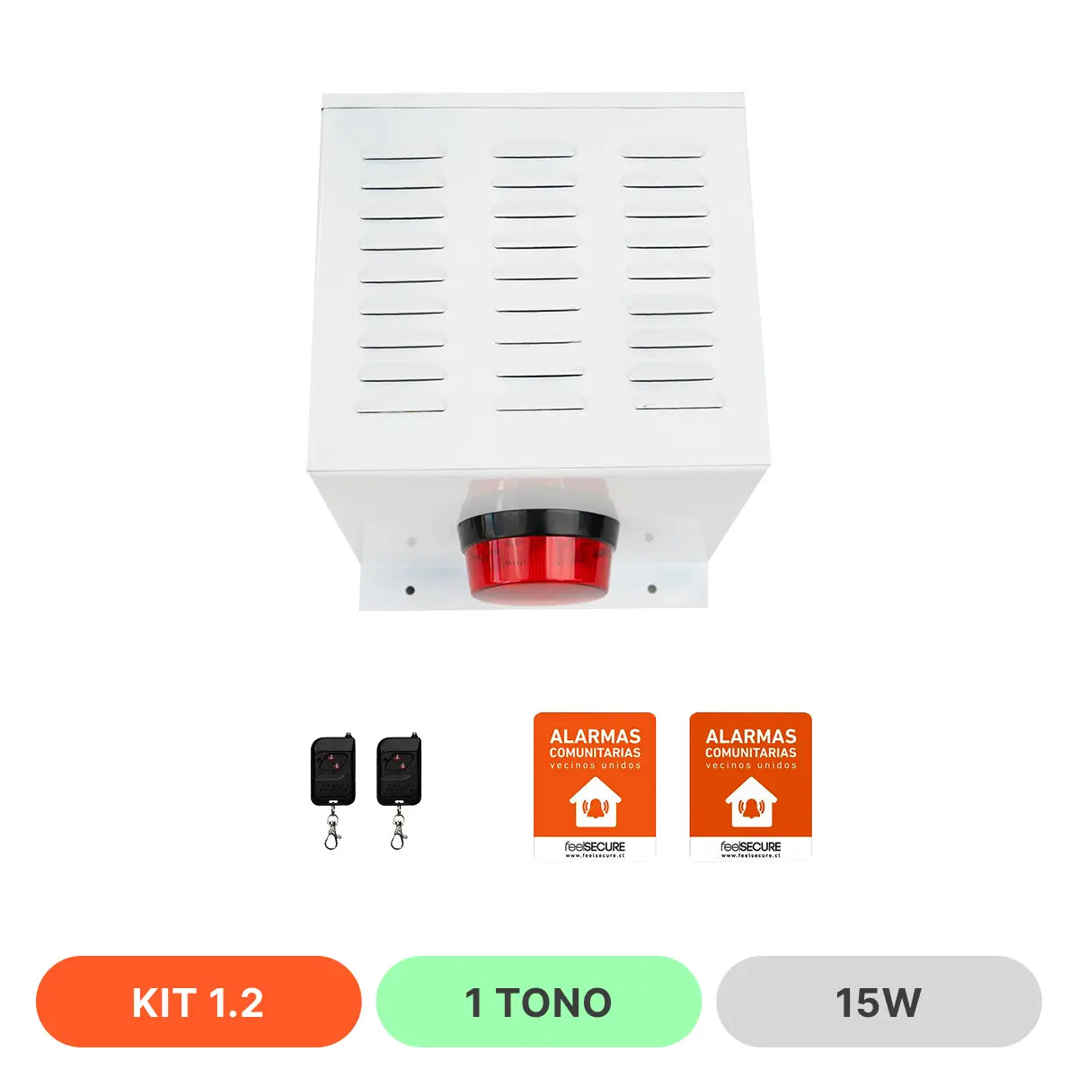 Kit 1.2 Alarma Comunitaria 15W + 2 Controles + 2 Placas | FeelSecure