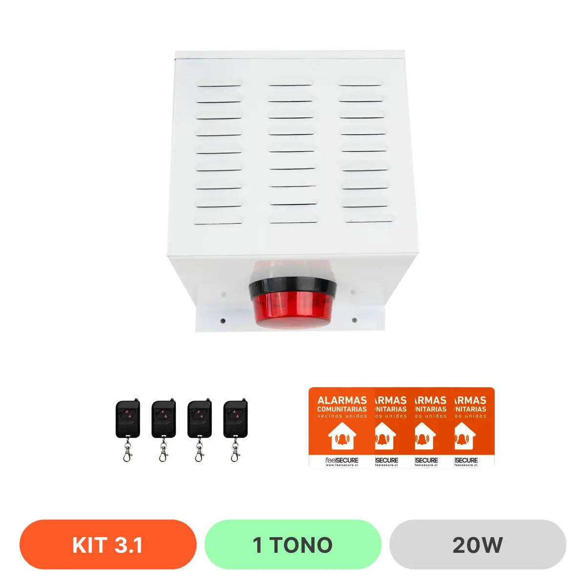 Kit 3.1 Alarma Comunitaria 20W + 4 Controles + 4 Placas | FeelSecure