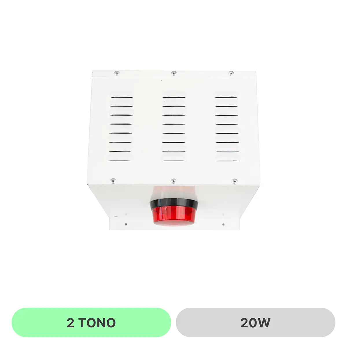 Potencia de Sonido: sirena de 20W que proporciona un sonido potente y de largo alcance, asegurando que las alertas sean escuchadas incluso en entornos ruidosos o abiertos.