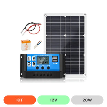 Kit Panel Solar 20W con Regulador y Batería 12V 4Ah Negro | FeelPower