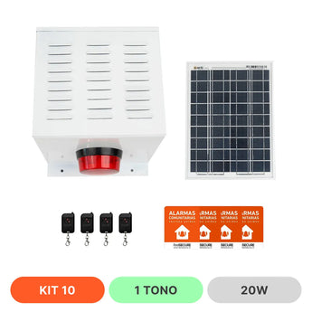 Kit 10 Alarma Comunitaria Solar 20W + 4 Controles + 4 Placas | FeelSecure