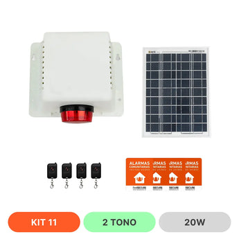 Kit 11 Alarma Comunitaria Solar 20W + 4 Controles + 4 Placas | FeelSecure