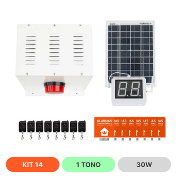 Kit 14 Alarma Comunitaria Solar 30W con Display Identificador + 8 Controles + 8 Placas | FeelSecure