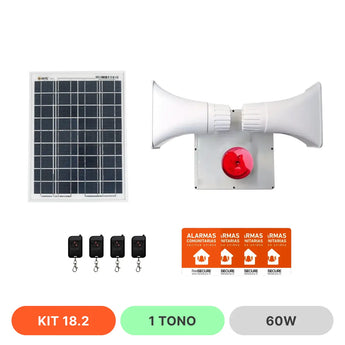 Kit 18.2 Alarma Comunitaria 60W Extrema Potencia + 4 Controles Remotos + 4 Placas + 1 Panel Solar Solar | FeelSecure