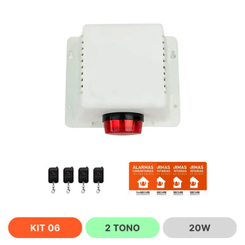 Kit 6 Alarma Comunitaria 20W + 4 Controles + 4 Placas | FeelSecure