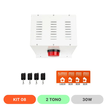 Kit 8 Alarma Comunitaria 30W - 2 Tonos + 4 Controles + 4 Placas | FeelSecure