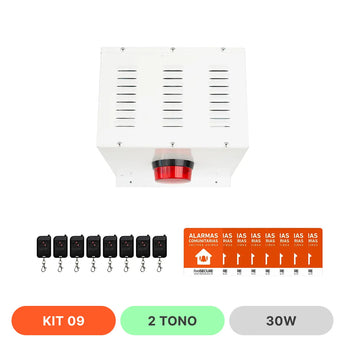 Kit 9 Alarma Comunitaria 30W + 8 Controles + 8 Placas | FeelSecure