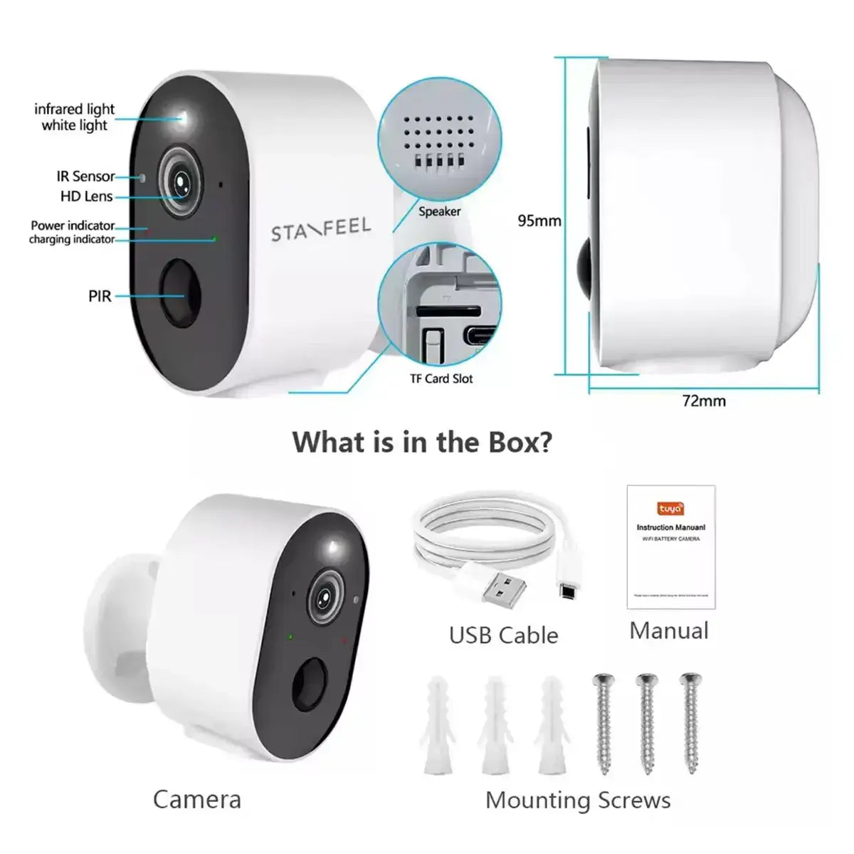 Cámara de 3MP Full HD, wifi, 100% inalámbrica, batería recargable 9.100 Mah + Panel Solar AutoRecargable y Autoinstalable.