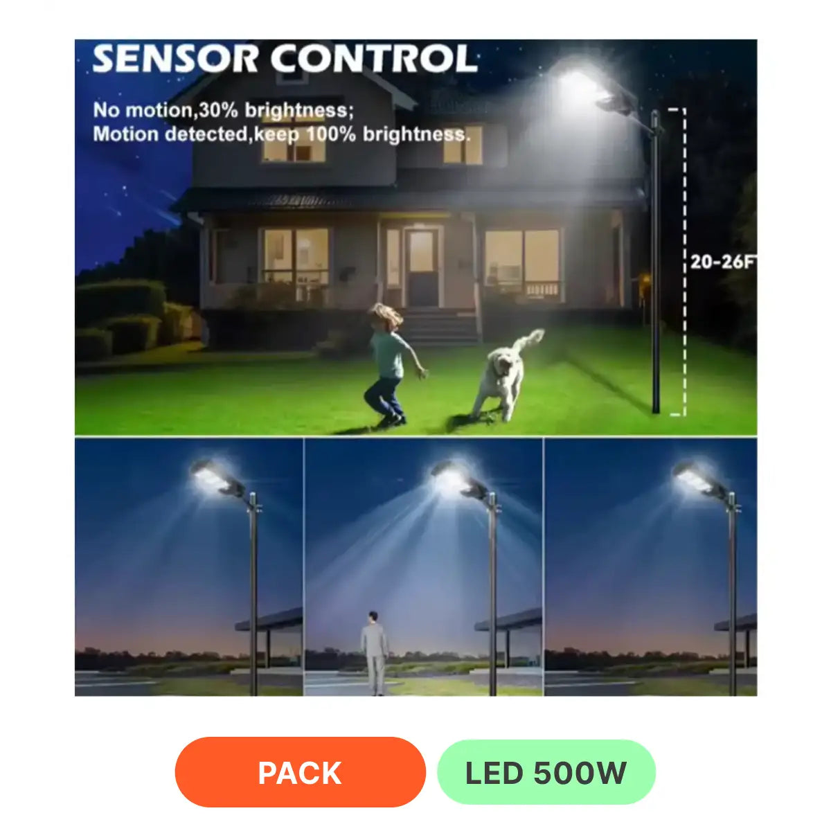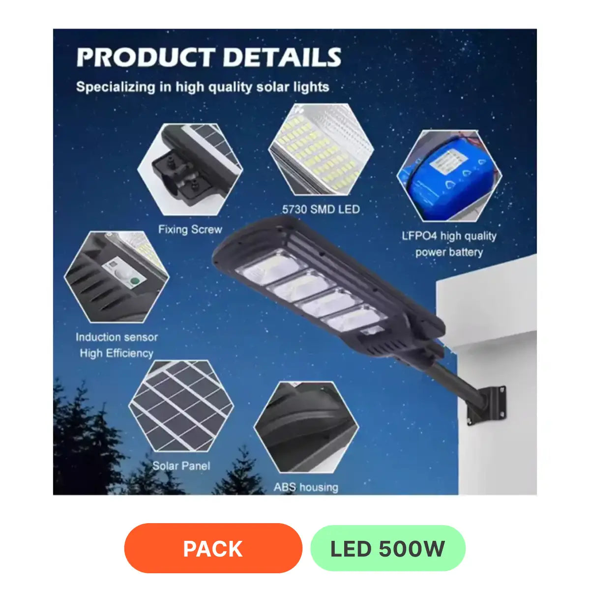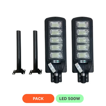 Pack 1 - 2 x Focos Solar Led 500W con Soportes para Poste